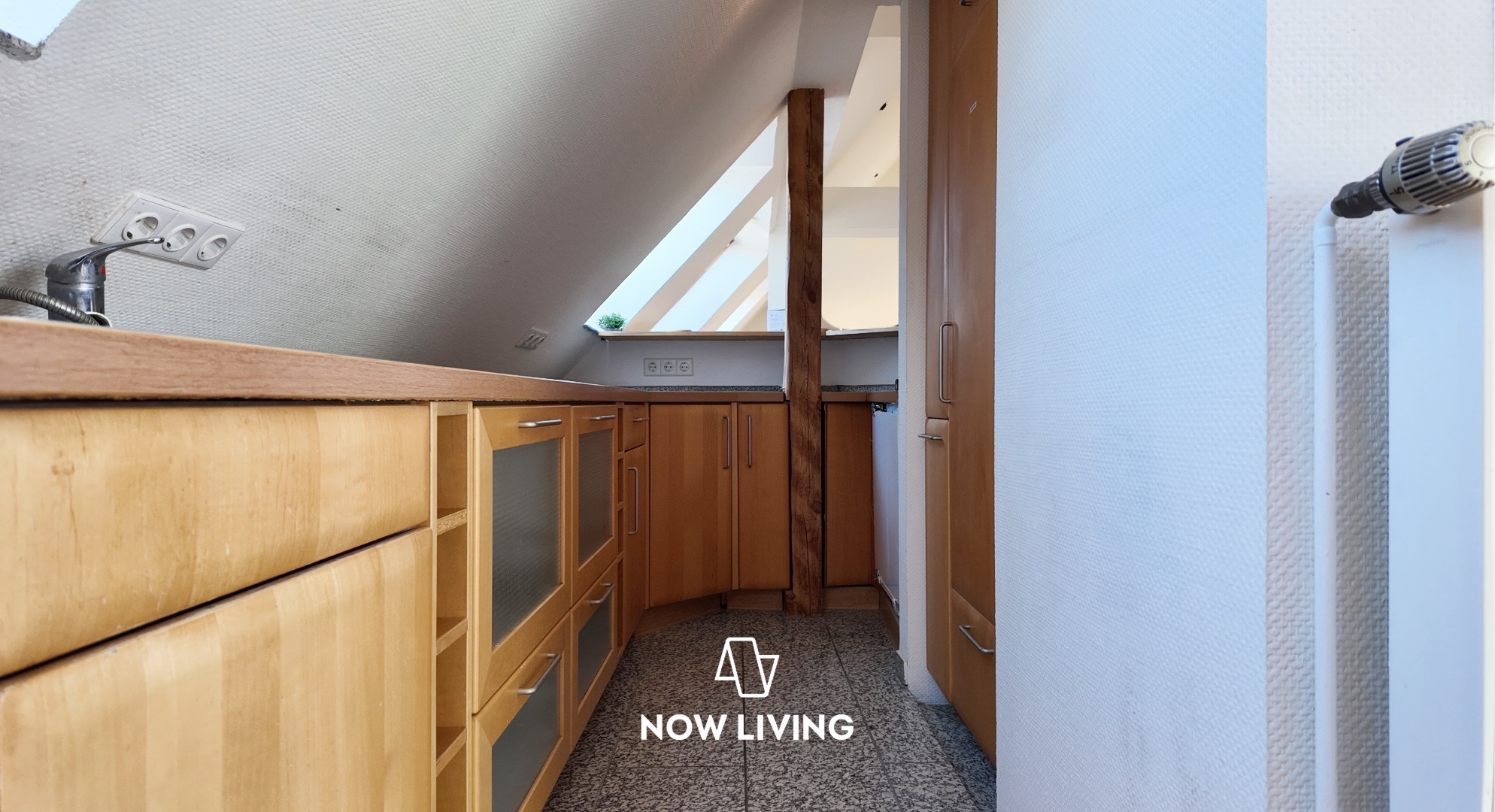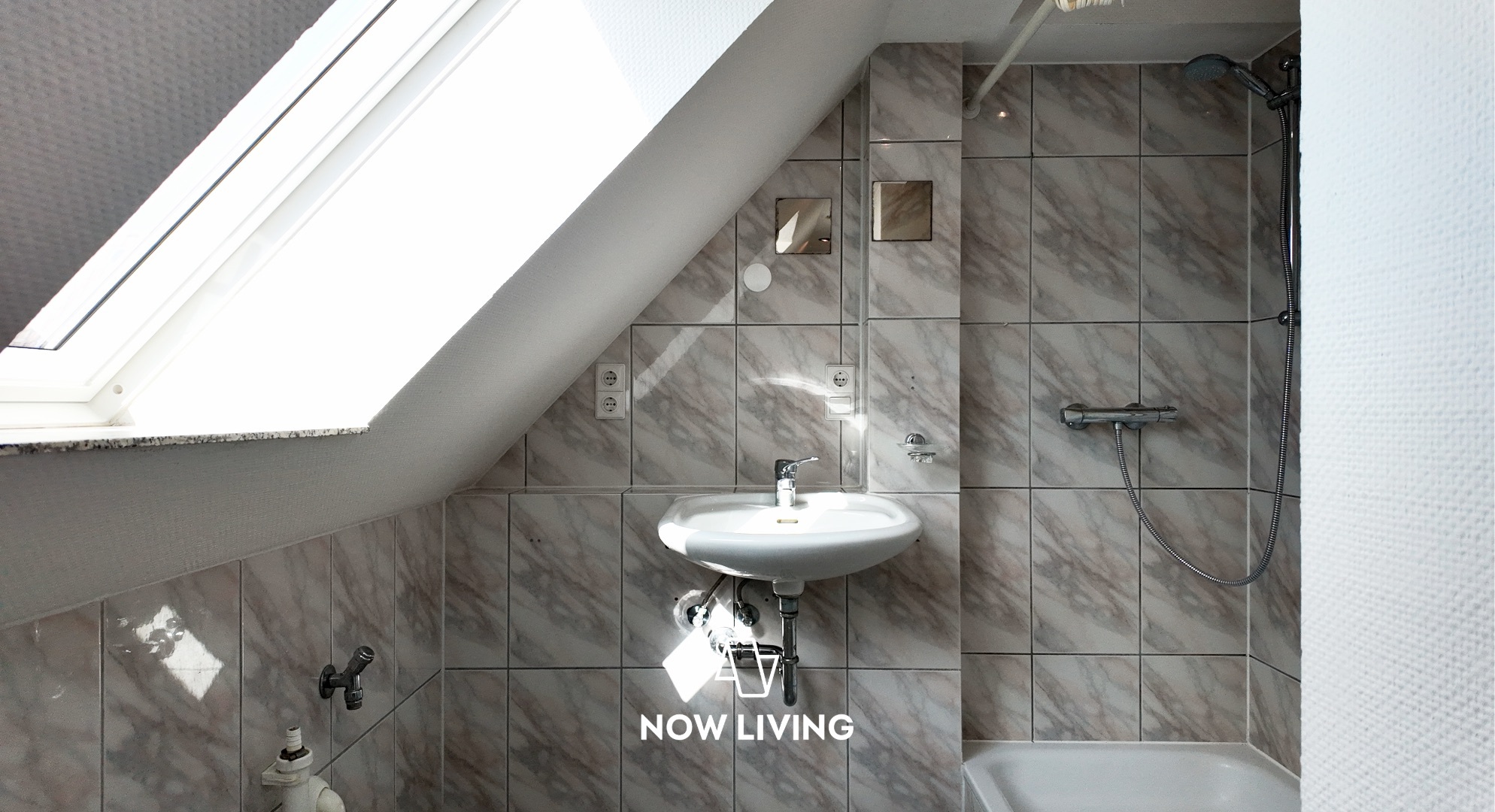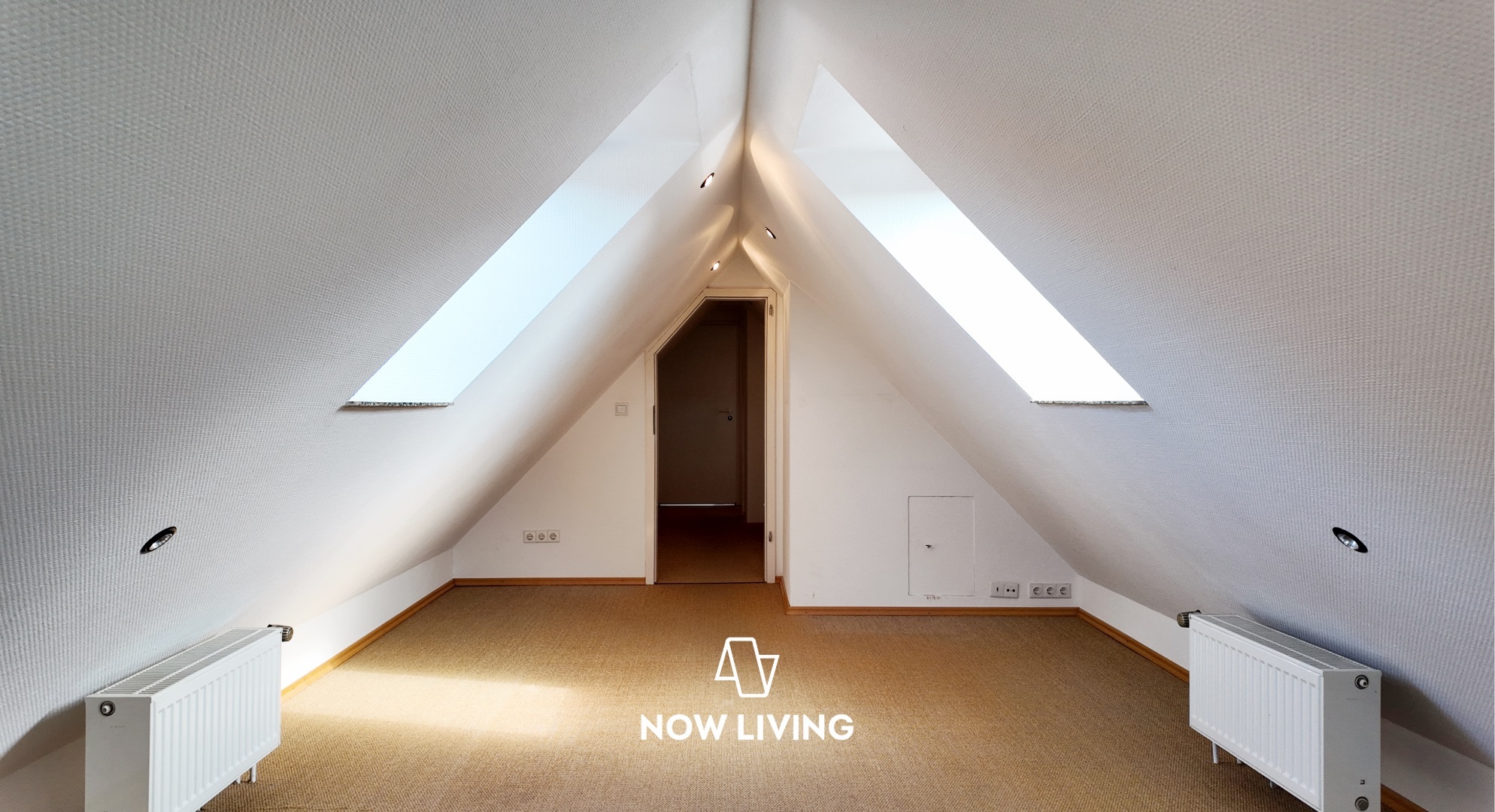 Durch die besonderen Schrägen entsteht ein individuelles Wohnambiente mit viel Charme. Der Spitzboden bietet zusätzlichen Stauraum, ergänzt durch den Fahrradkeller im Haus. Zwei Badezimmer – eines mit Badewanne und Dusche, das andere mit Dusche und WC – erhöhen den Wohnkomfort.