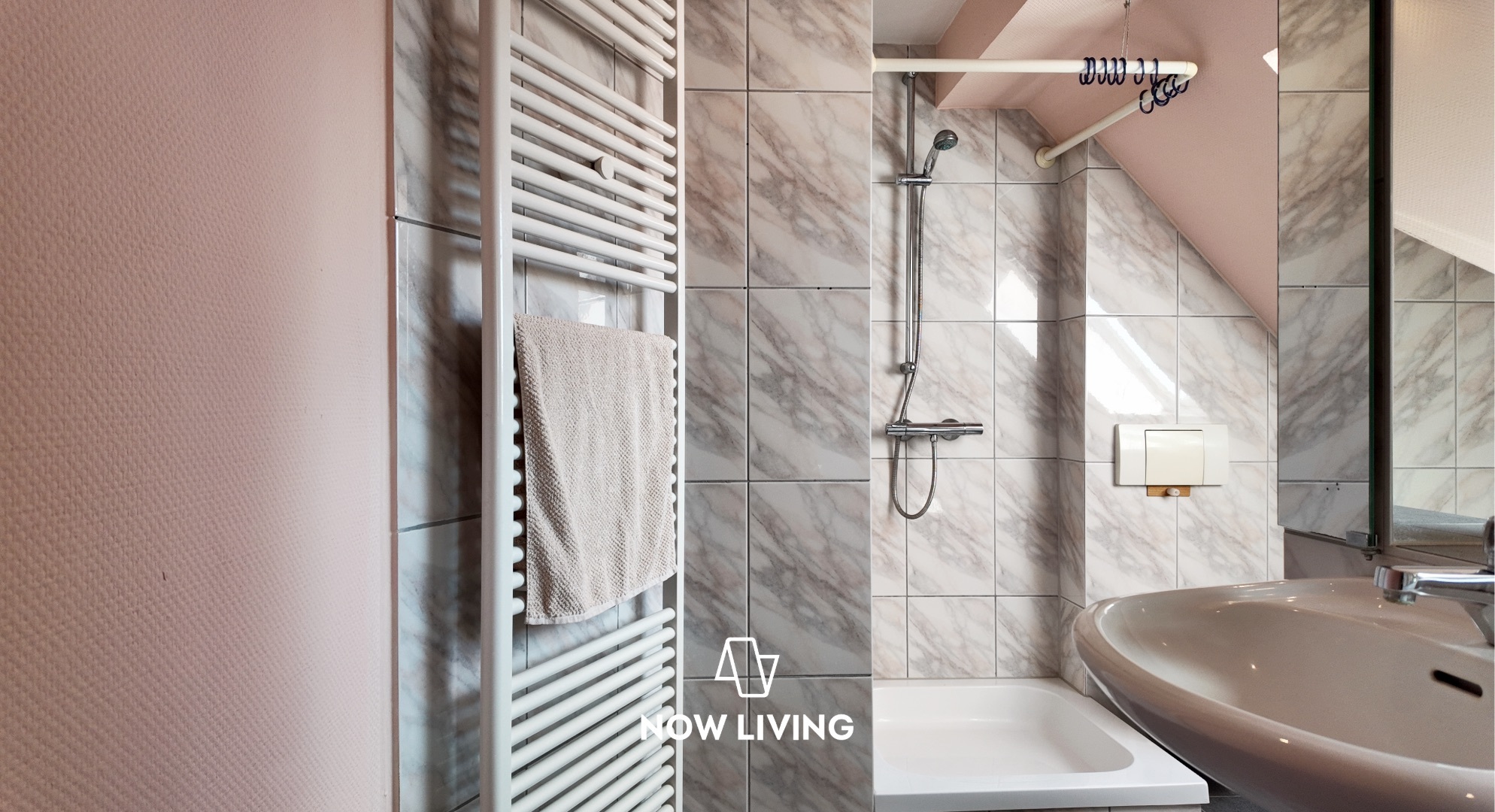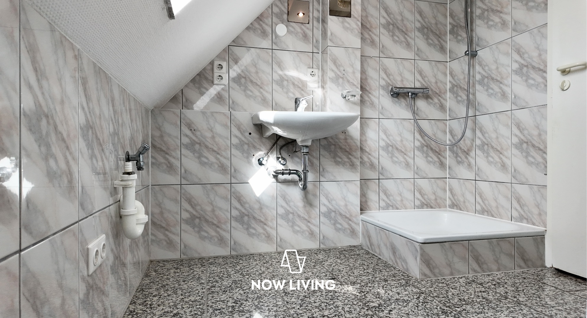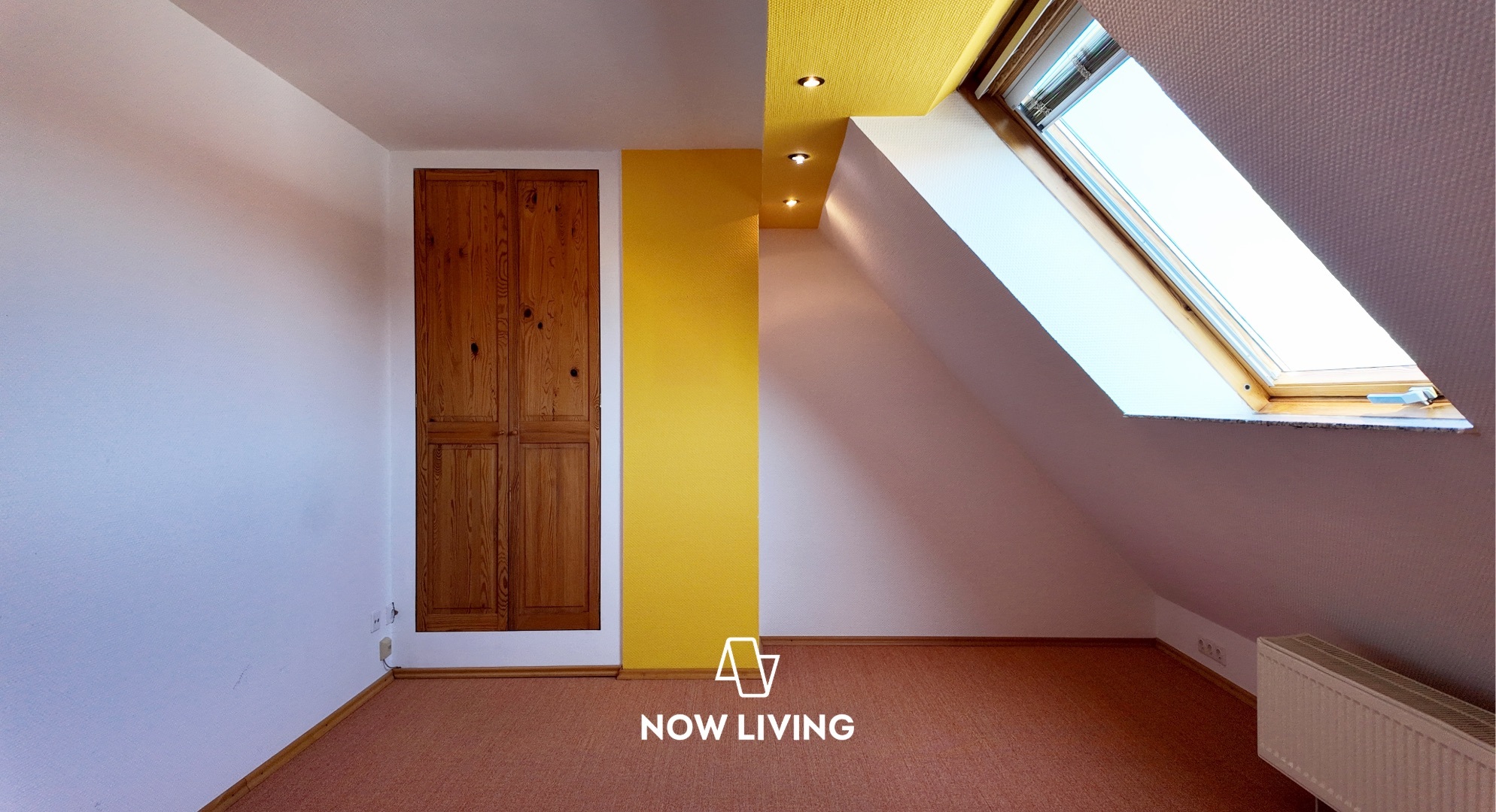 Durch die besonderen Schrägen entsteht ein individuelles Wohnambiente mit viel Charme. Der Spitzboden bietet zusätzlichen Stauraum, ergänzt durch den Fahrradkeller im Haus. Zwei Badezimmer – eines mit Badewanne und Dusche, das andere mit Dusche und WC – erhöhen den Wohnkomfort.