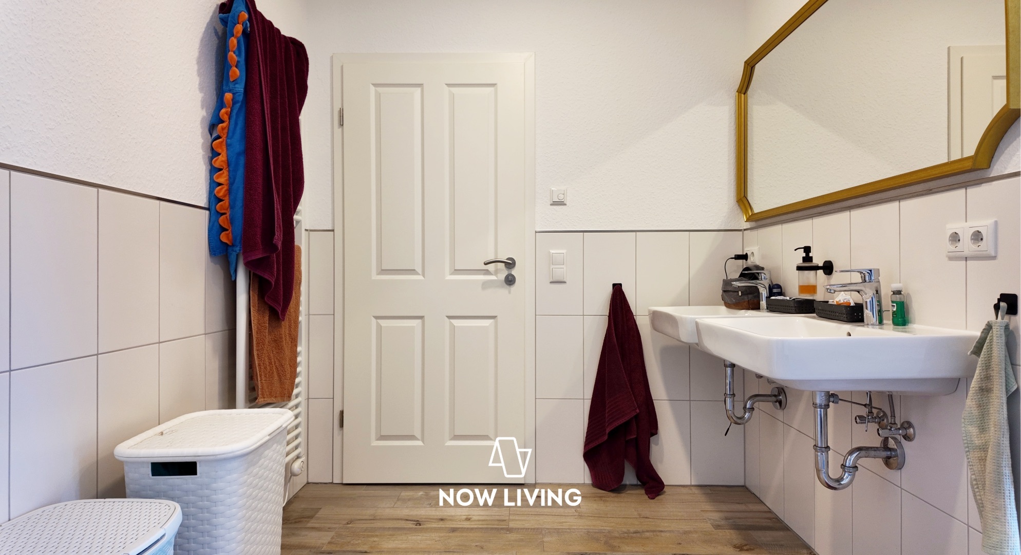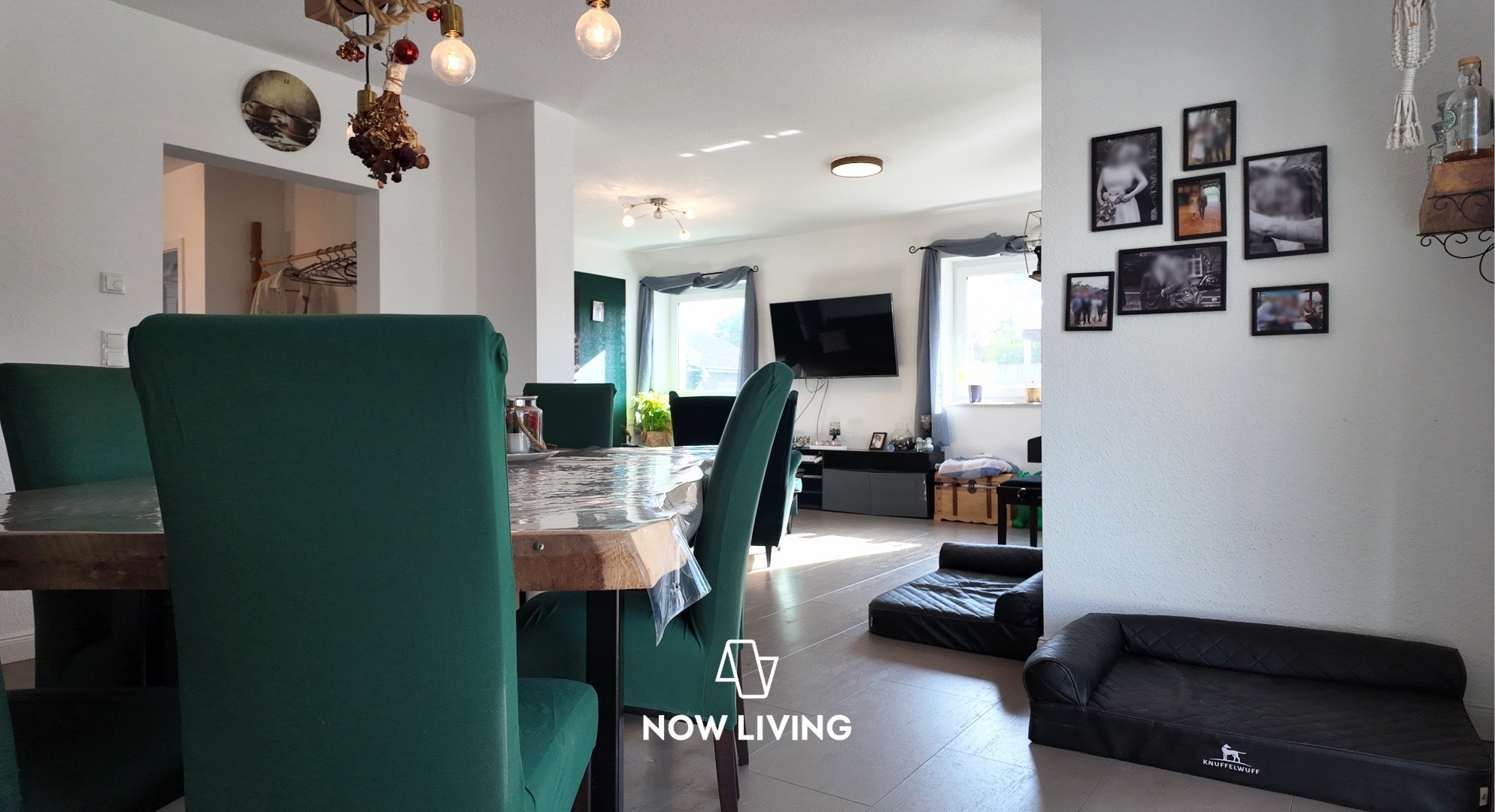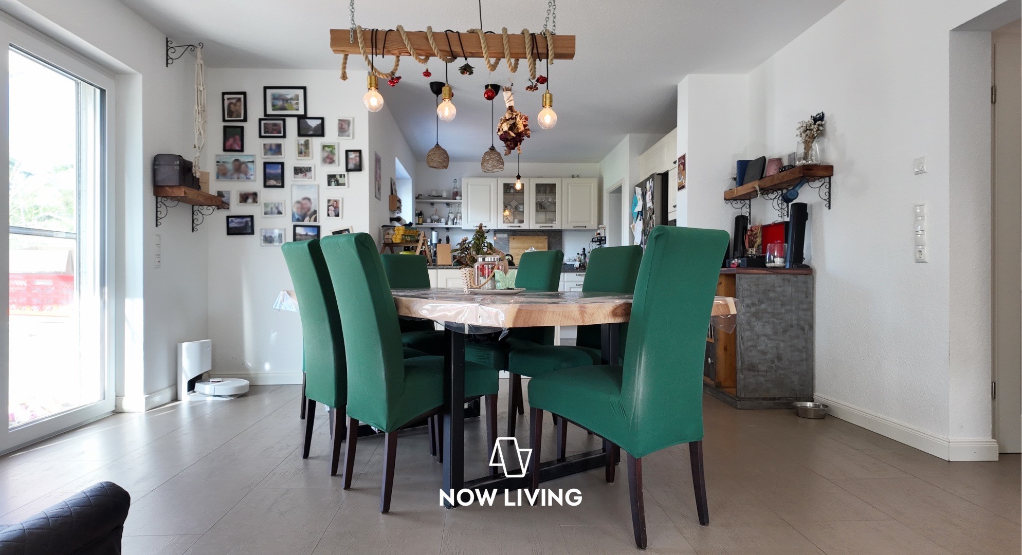 Der großzügige Wohnbereich mit seinen bodentiefen Fenstern öffnet sich zur sonnigen Terrasse und in den liebevoll angelegten Garten. Ob gemeinsames Frühstück im Freien, entspannte Sommerabende oder Feste mit Freunden – hier entstehen Erinnerungen. Die angrenzende Einbauküche überzeugt durch modernes Design, hochwertige Ausstattung und clevere Stauraumlösungen. Sie ist nicht nur Kochraum, sondern zentraler Treffpunkt des Hauses. Vier Schlafzimmer (eines davon im EG), zwei geschmackvoll ausgestattete Bäder sowie weitere flexibel nutzbare Räume bieten viel Raum für individuelles Wohnen – ob für Familie, Homeoffice oder Gäste. Wertige Bodenbeläge aus Vinyl, Parkett und Fliesen unterstreichen den zeitlosen Charakter des Hauses und schaffen eine warme Wohnatmosphäre. Technisch ist die Immobilie auf der Höhe der Zeit: Eine effiziente Wärmepumpe in Kombination mit Fußbodenheizung und PV-Anlage sorgt ganzjährig für behagliches Klima und niedrige Energiekosten.