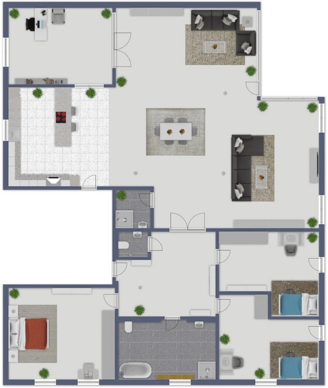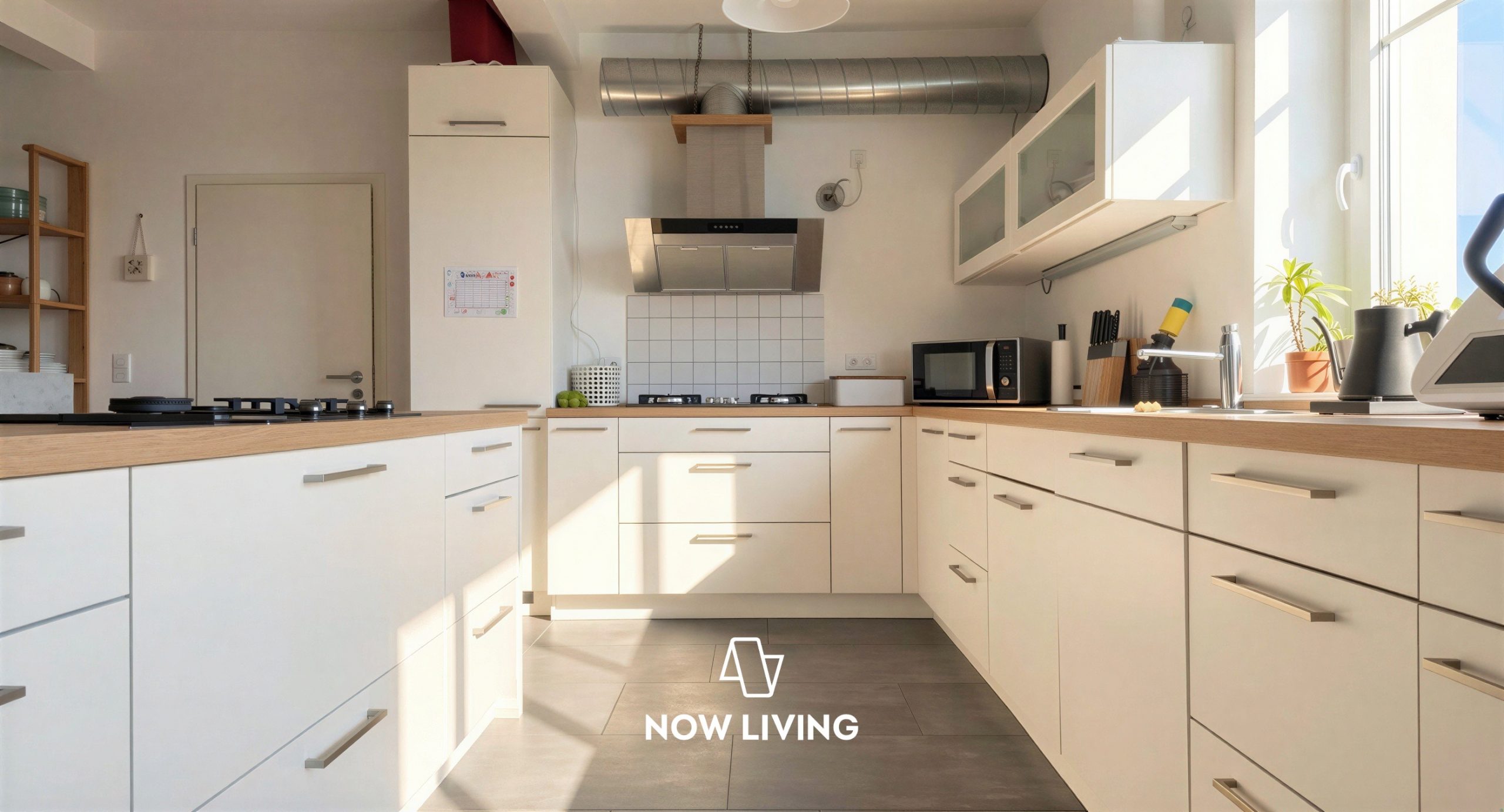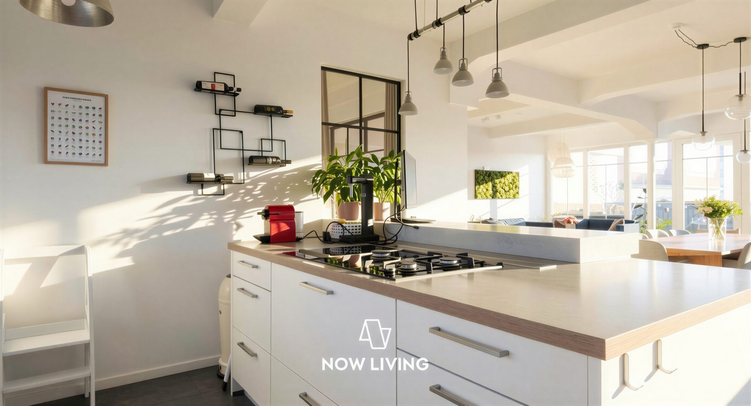 Schon beim Eintreten spürt man: Hier wird nicht in Zimmern gedacht, sondern in Weite. Fünf Räume, die sich nicht aneinanderreihen, sondern entfalten. Der offene Wohn-, Ess- und Küchenbereich ist das kraftvolle Zentrum – ein Raum für Alltag und Ausnahme zugleich. Hier wird gekocht, gearbeitet, diskutiert, gefeiert. Die hochwertige Einbauküche mit E-Geräten ist kein späteres Projekt, sondern integraler Bestandteil. Alles ist bereit.