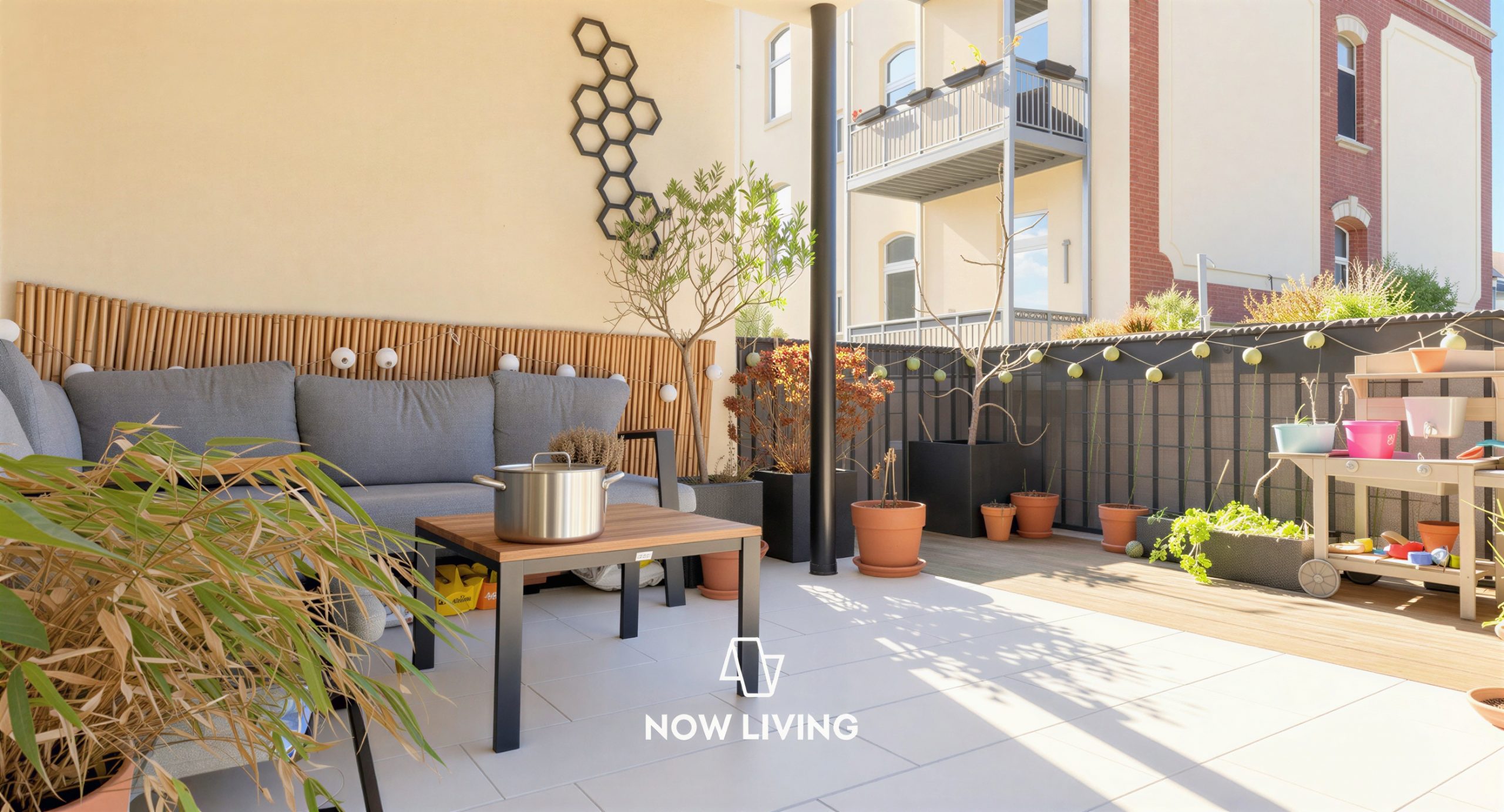 Großzügige Fensterflächen mit 3-fach-Wärmeschutzverglasung – teils bodentief – holen das Licht tief in den Raum und unterstreichen den Loft-Charakter. Der direkte Zugang zur Loggia erweitert den Wohnbereich ins Freie. Ein Ort für den ersten Kaffee am Morgen oder den ruhigen Ausklang am Abend. Diese Loggia ist kein Detail – sie ist Teil des Lebensgefühls.