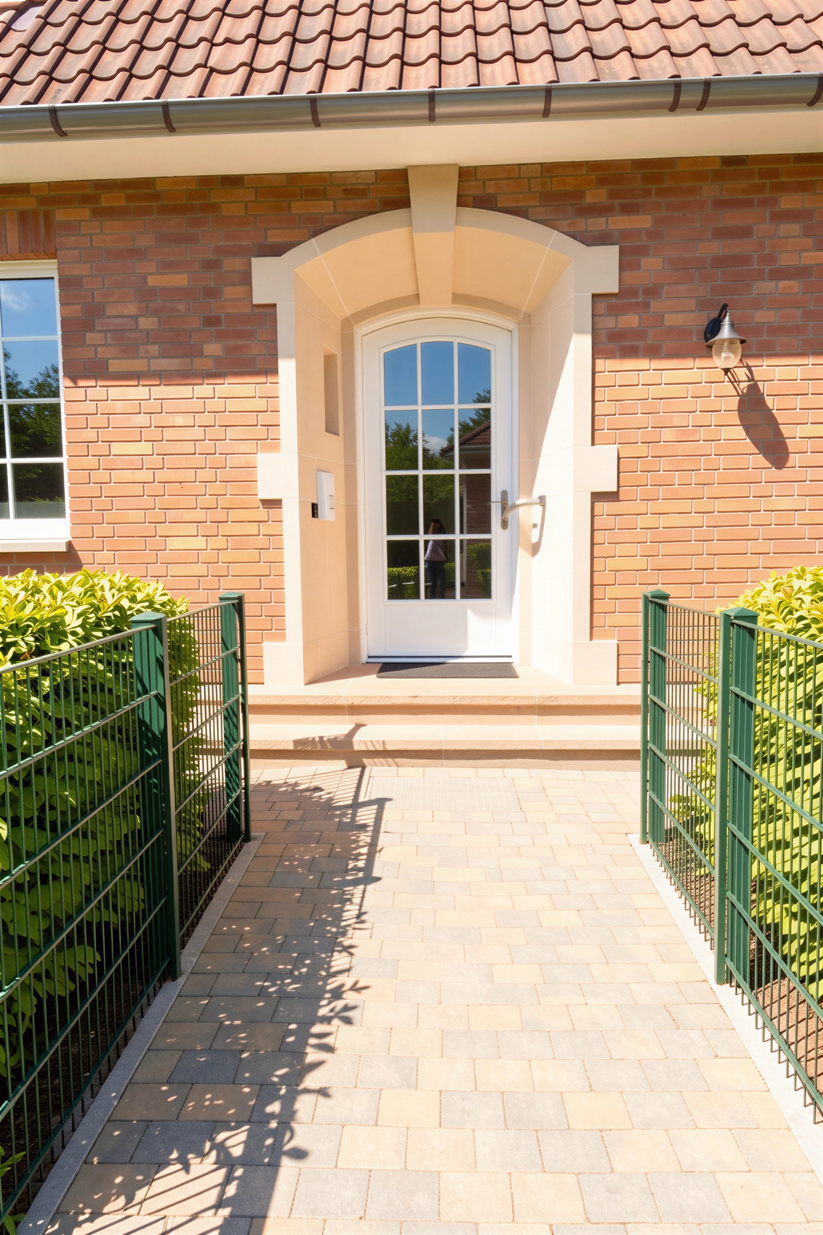 Die Bodenbeläge bestehen aus einer Kombination von Naturstein, Fliesen, Laminat, Textilbelägen und PVC auf Estrich. Kunststofffenster mit Isolierverglasung unterstützen eine solide energetische Basis. Holztüren – teilweise mit Glaselementen – sowie eine Hauseingangstür aus Holz mit Glasfüllung unterstreichen den klassischen Charakter des Hauses.