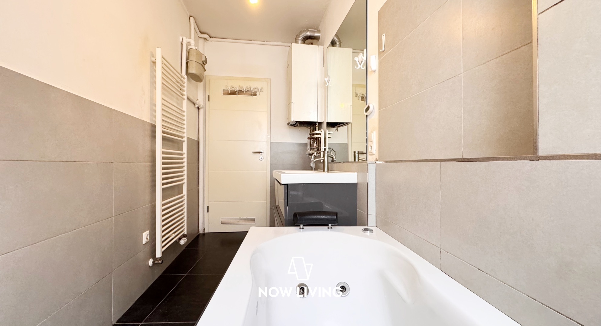 Das Badezimmer ist mit einer Badewanne ausgestattet und sorgt für entspannende Momente nach einem langen Tag.