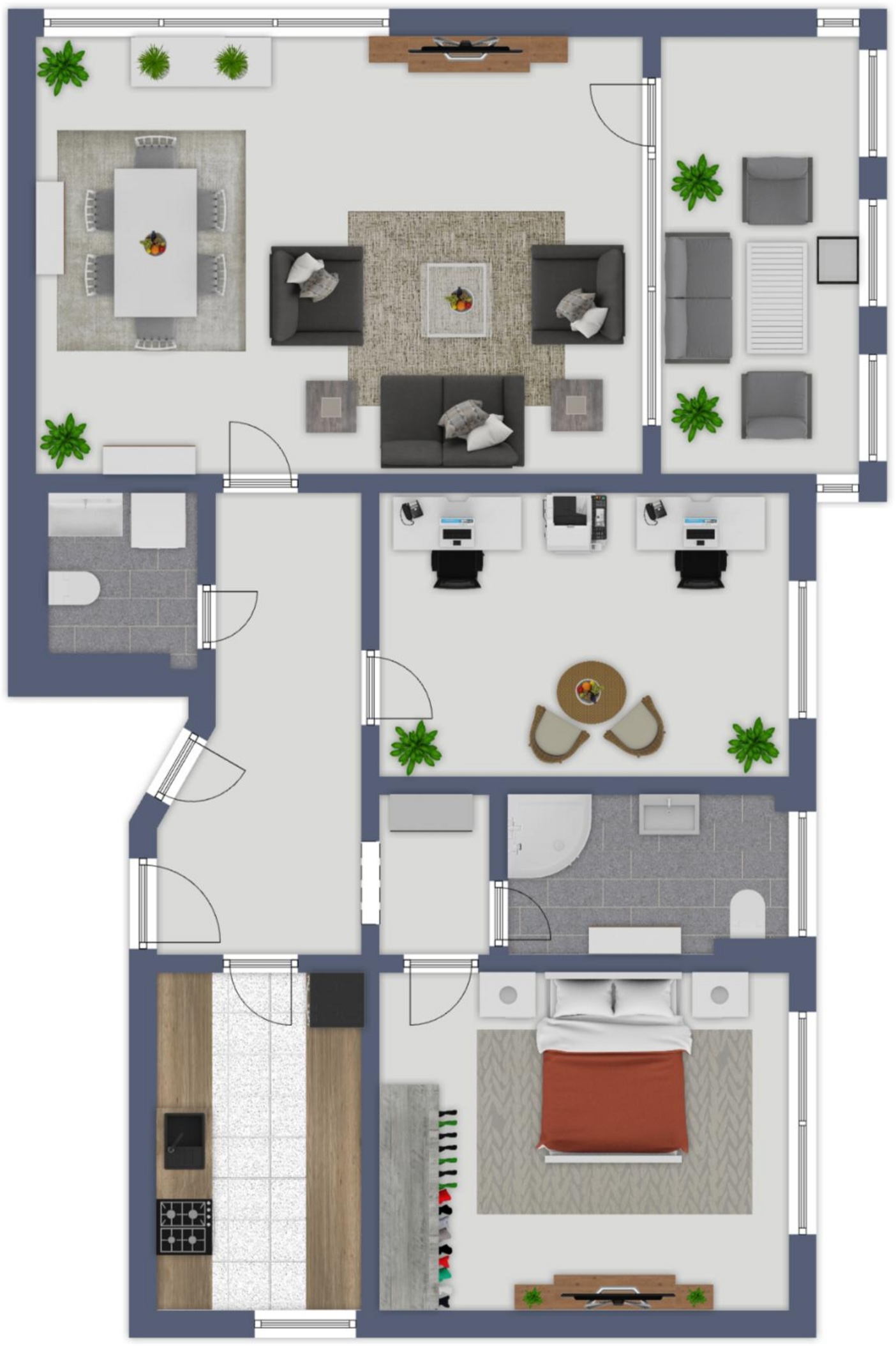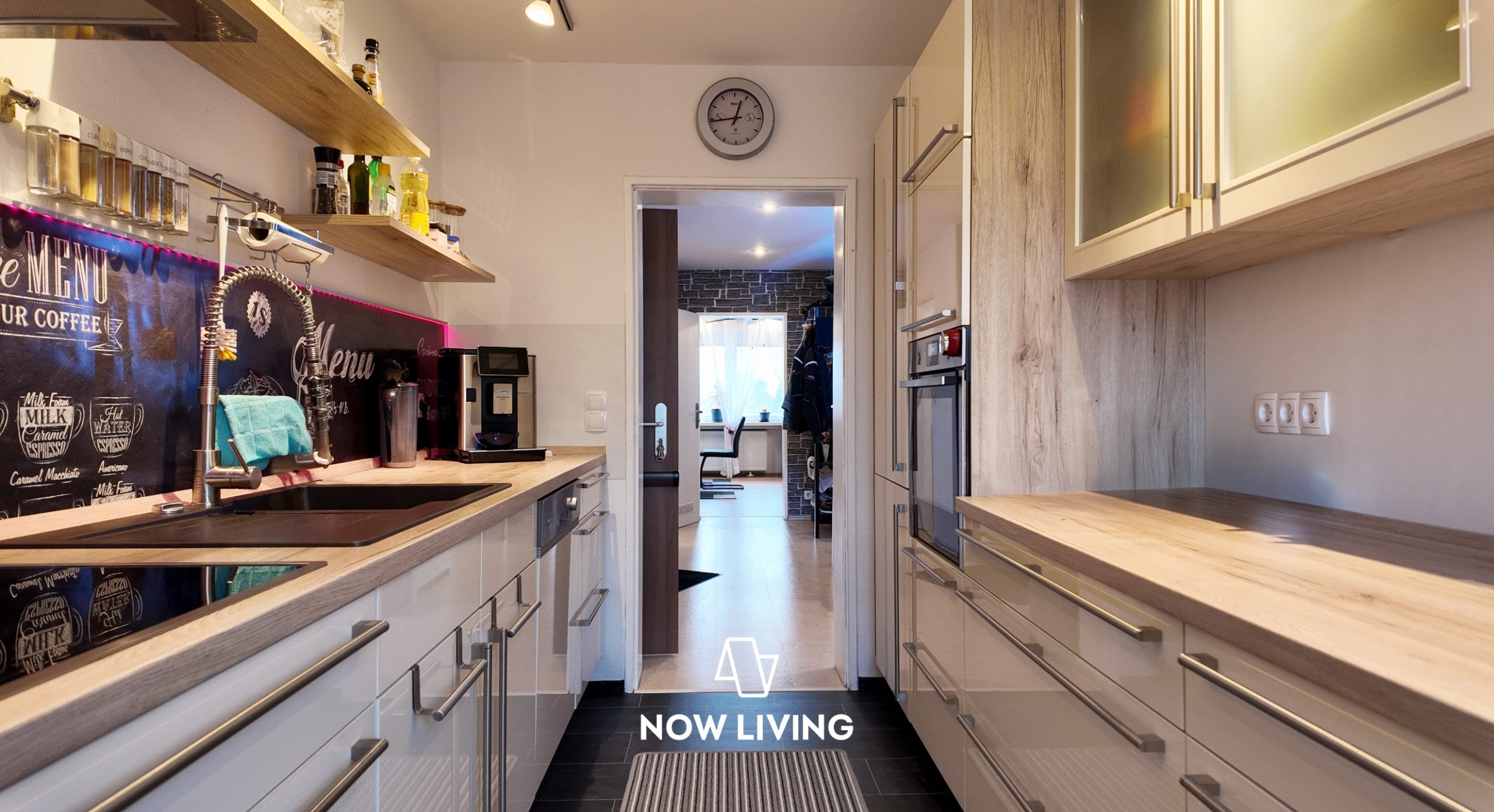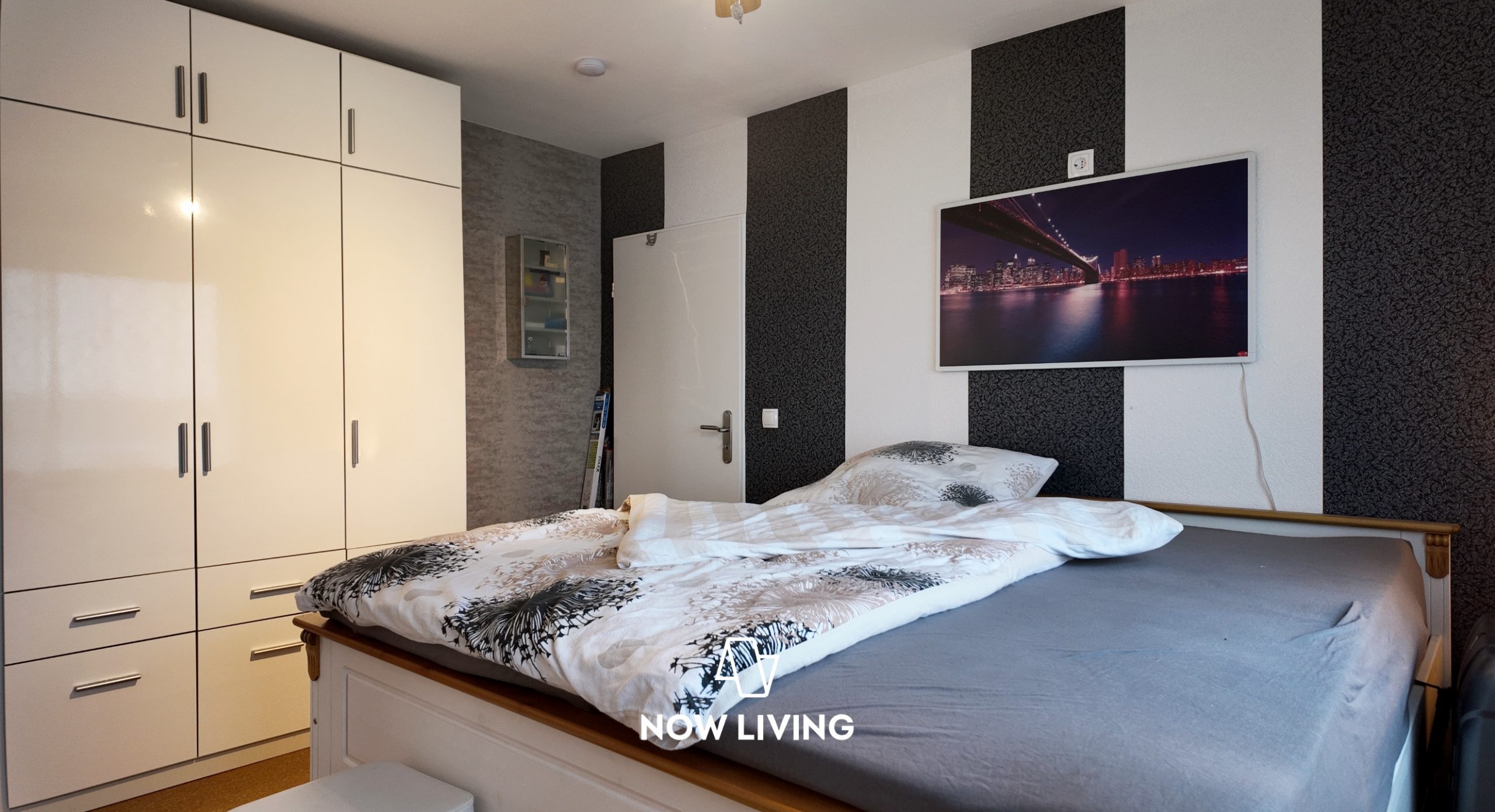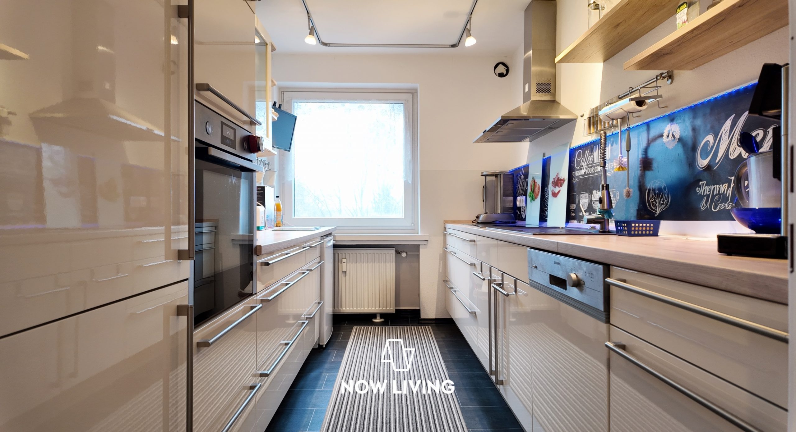 Der Mittelpunkt der Wohnung ist das helle Wohnzimmer mit Zugang zur großzügigen Loggia – ein Ort zum Durchatmen, für das Frühstück im Freien oder den entspannten Feierabend. Der warme Kork-Laminatboden sorgt in Wohnzimmer, Schlafzimmer sowie im Büro/Gästezimmer für eine behagliche Atmosphäre. Einbau-Deckenstrahler setzen im Wohnbereich stimmungsvolle Lichtakzente, während 2-fach verglaste Fenster und elektrische, app-gesteuerte Jalousien in Wohnzimmer, Büro und Schlafzimmer für Komfort, Lichtschutz und Energieeffizienz sorgen. Das Schlafzimmer bietet ausreichend Platz für ein komfortables Bett und einen großen Schrank – ruhig, klar strukturiert und ideal als persönlicher Rückzugsort. Das Büro bzw. Gästezimmer ist flexibel nutzbar: Homeoffice, Hobbyraum oder Gästedomizil – dank der modernen Ausstattung fügt es sich mühelos in Ihren Alltag ein. In allen Wohnräumen schaffen die erneuerten Zimmertüren ein stimmiges, gepflegtes Gesamtbild. Das Badezimmer präsentiert sich zeitgemäß: 2018 saniert, mit Walk-in-Dusche und ansprechenden Fliesen; die Badtür wurde 2019 erneuert und fügt sich harmonisch in das Gesamtbild ein. Ergänzt wird es durch ein separates Gäste-WC, das 2020 vollständig erneuert wurde. Die Küche ist funktional und einladend zugleich. Bodenfliesen, ein Fenster und der erneuerte Wasseranschluss sorgen für ein angenehmes Arbeitsumfeld. Eine Einbauküche mit Elektrogeräten ist bereits vorhanden – einfach einziehen und loskochen. Der Flur empfängt Sie mit einem durchdachten Konzept: Ein Einbauschrank bietet Stauraum für Jacken, Schuhe und Alltägliches, Deckenstrahler und ein Nachtlicht mit Dämmerungssensor sorgen für Orientierung und Atmosphäre. Die Wohnungseingangstür ist mit Sperrriegel und digitalem Spion ausgestattet – ein spürbares Plus an Sicherheit und Komfort schon beim Nach-Hause-Kommen.