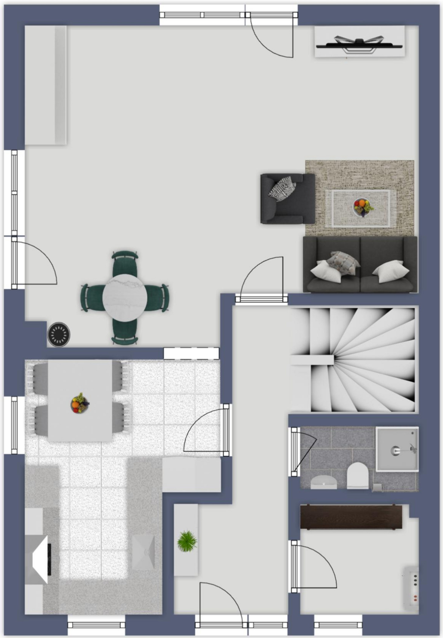 • Teils Bodentiefe 2-Fach verglaste Fenster