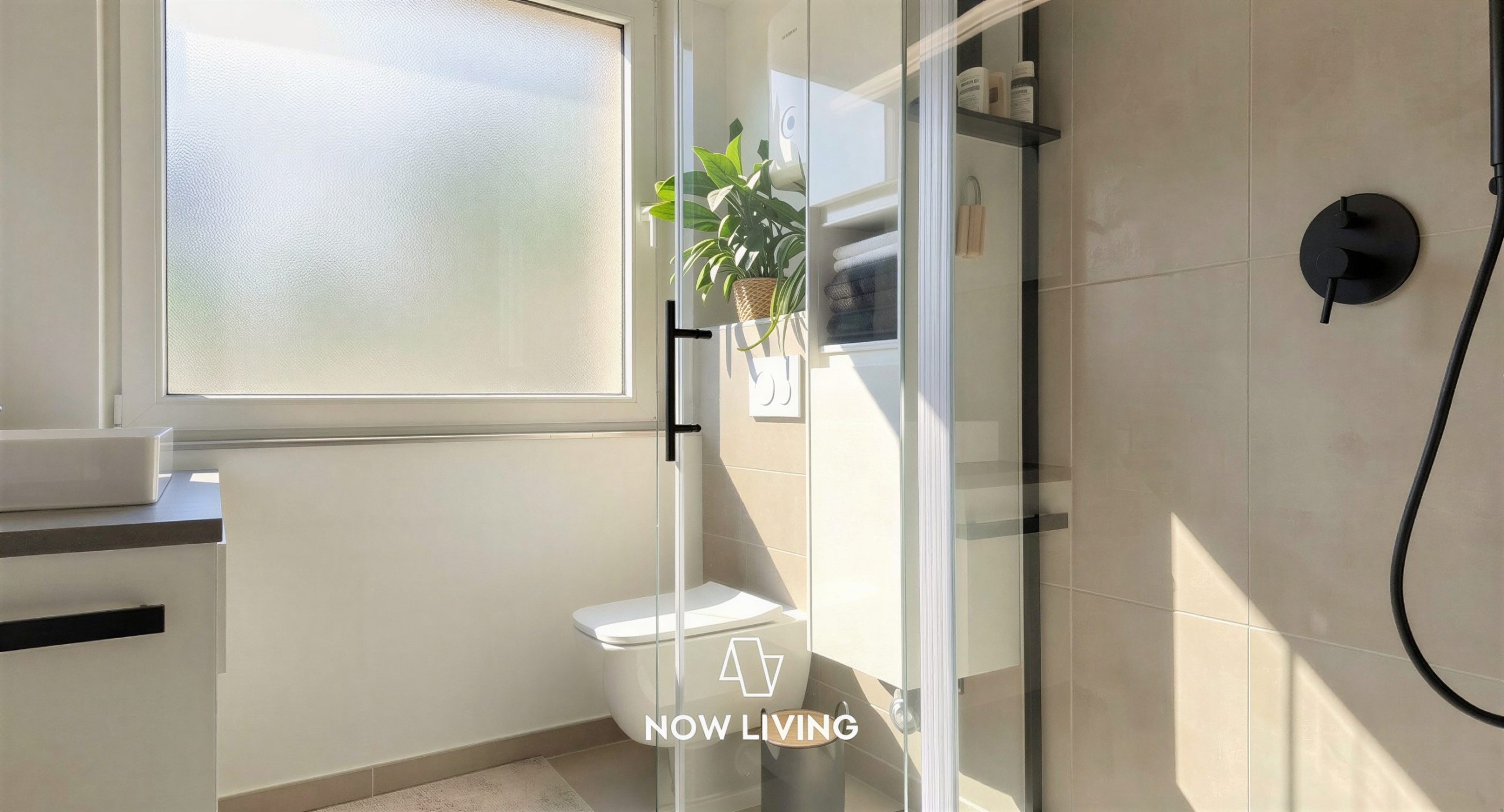 - Neues Badezimmer mit Fliesen, Sanitäranlagen und Möbeln