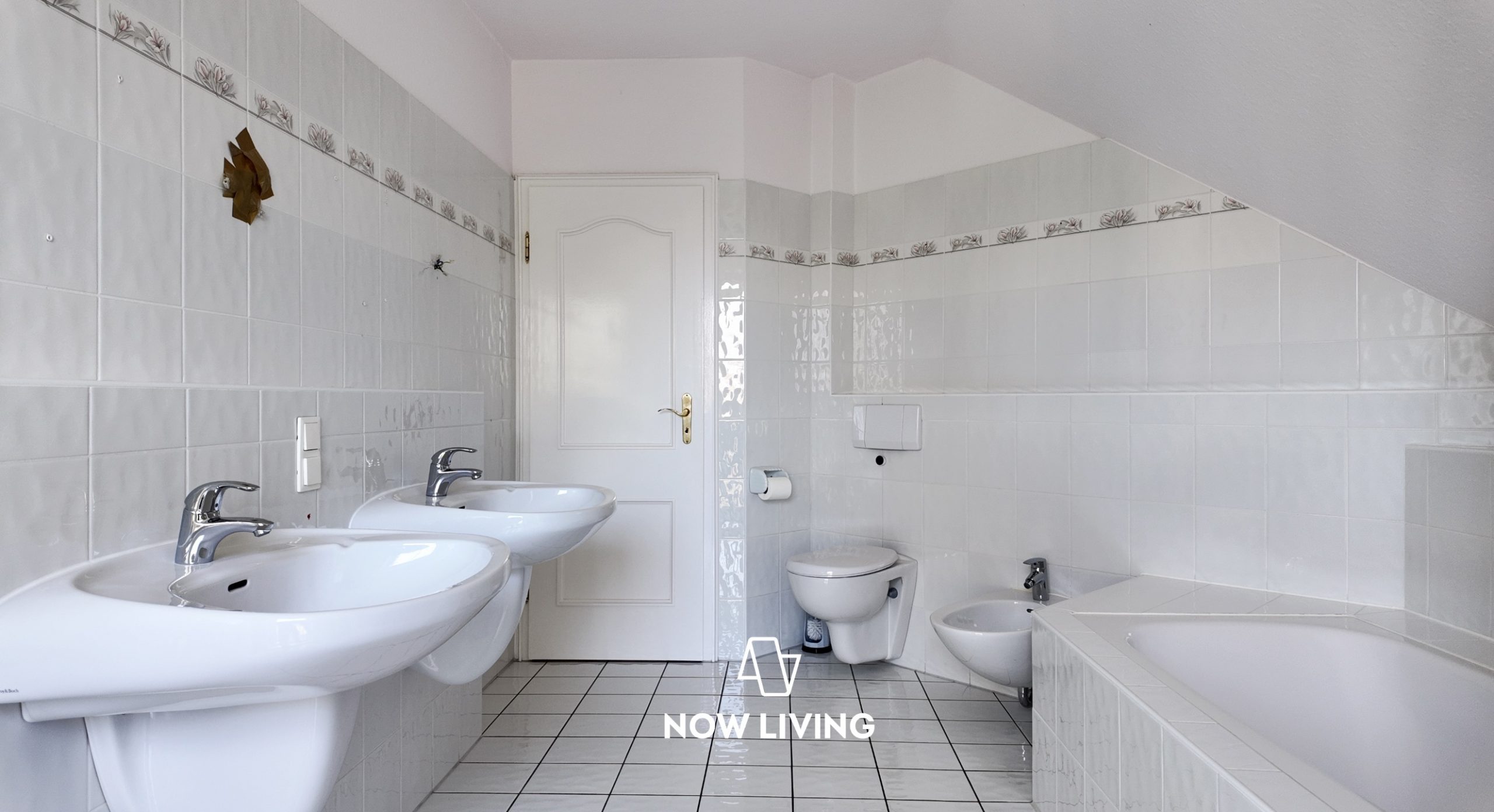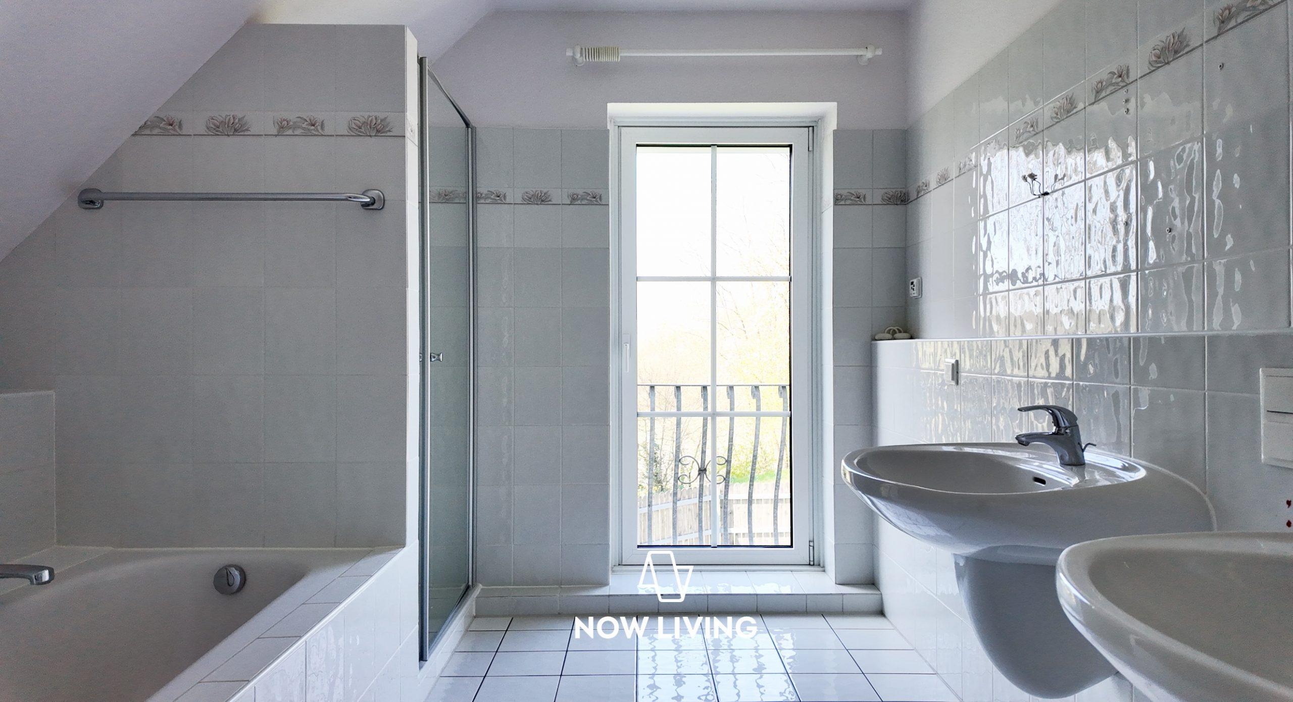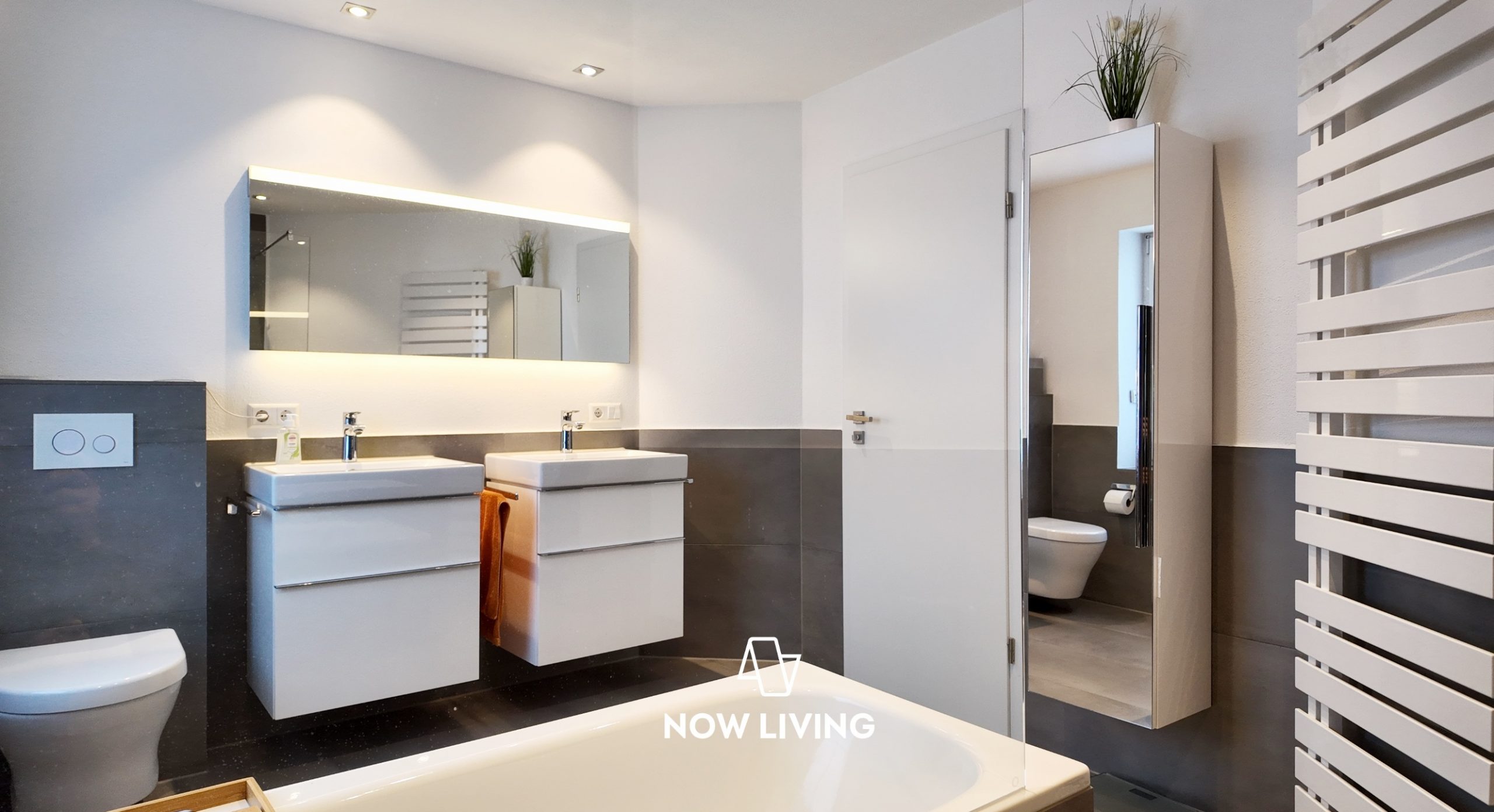 • Badezimmer mit Wanne, Dusche und Doppelwaschbecken im EG und OG